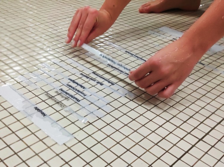 Ablauf: Die Sportler*innen werden in Staffeln (am besten 2er oder 3er Teams) eingeteilt und stehen alle auf einer Seite des Beckens. Auf der anderen Seite liegen für jede Staffel Zettel aus, die einzeln eingesammelt und auf die Startseite geschwommen werden müssen. Das kann zum Beispiel die Streckenreihenfolge der DMS sein. Wenn alle Zettel auf der Startseite sind, müssen diese in die richtige Reihenfolge gebracht werden. Schlussendlich gewinnt die Staffel mit den meisten richtigen Strecken.