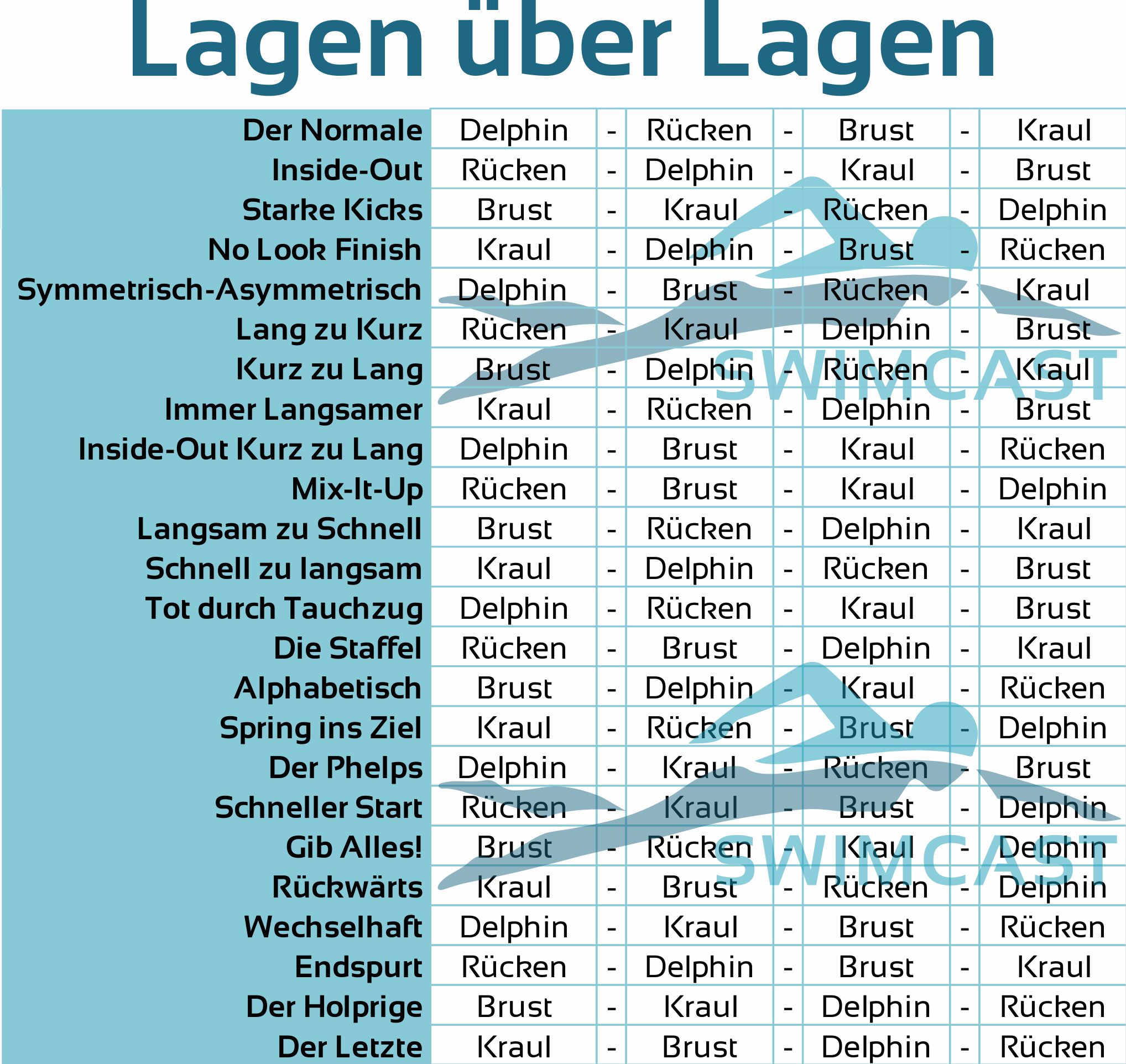 Die Schwimmart ist frei wรคhlbar, bleibt aber je Block bei der gleichen Aufgabe (z.B. Rรผcken mit Paddles).